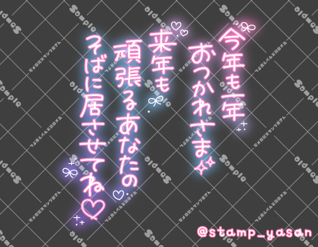 「今年も一年おつかれさま 来年も頑張るあなたのそばに居させてね」のスタンプ
