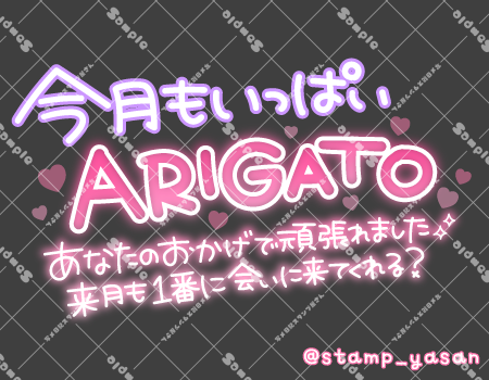 「今月もいっぱいARIGATO あなたのおかげで頑張れました 来月も1番に会いに来てくれる?」のスタンプ