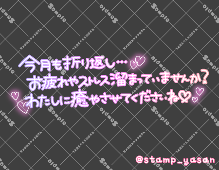 「今月も折り返し…お疲れやストレス溜まっていませんか?わたしに癒やさせてくださいね」のスタンプ