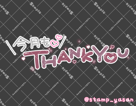 「今月お逢いできた皆様ありがとうございました」「来月もお待ちしております」のスタンプ