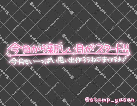 「今日から新しい月がスタート!!今月もいーっぱい思い出作ろうね♡まってるよ」のスタンプ