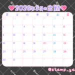 2026年3月のカレンダースタンプ(日曜始まり)