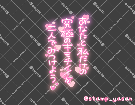 「あなたと私だけの究極のキモチイイを二人でみつけよう」のスタンプ(縦書き)