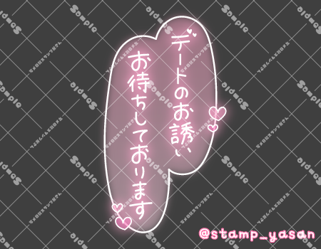 「デートのお誘いお待ちしております」のスタンプ(縦書き)