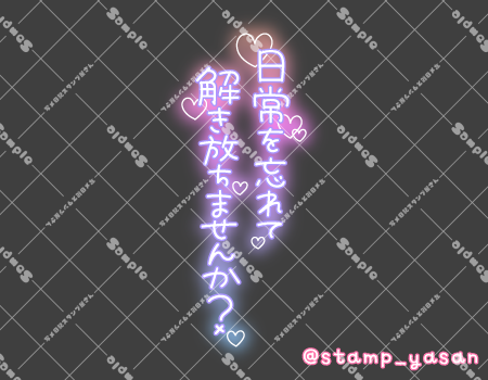 「日常を忘れて解き放ちませんか?」のスタンプ(縦書き)