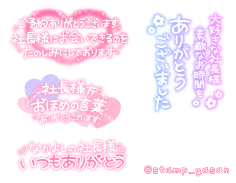 「社長様にお会いできるのをたのしみにしております」「なかよしの社長様いつもありがとう」等「社長様」関連のスタンプ