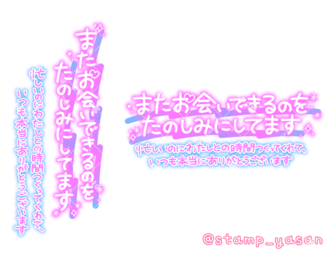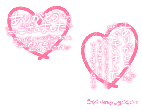 「ありがとうございました 沢山かわいいって言ってくれたの、ちょっと照れちゃったけどすんごく嬉しかったです」のスタンプ(縦書き有)
