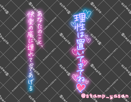 「理性は置いてきてね♡」「あなたのこと、快楽の底に連れてってあげる」のスタンプ(縦書き)