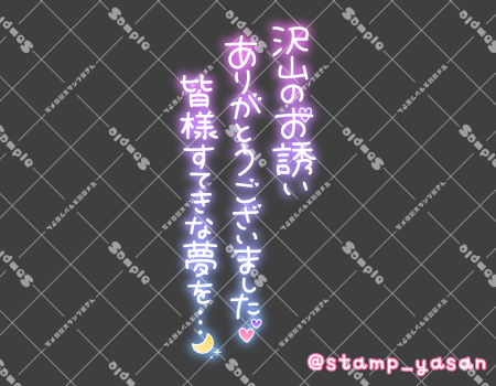 「沢山のお誘いありがとうございました♡皆様すてきな夢を…」のスタンプ(縦書き)