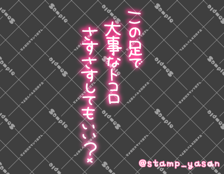「この足で大事なトコロさすさすしてもいい?」のスタンプ(縦書き)
