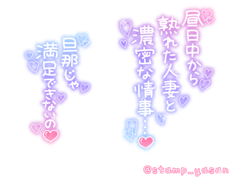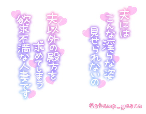 「夫にはこんな淫らな姿見せられないの」「夫以外の殿方を求めてしまう欲求不満な人妻です」のスタンプ(縦書き)