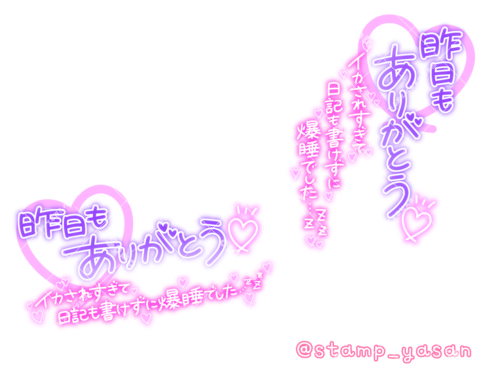 「昨日もありがとう イカされすぎて日記も書けずに爆睡でした」のスタンプ(縦書き有)