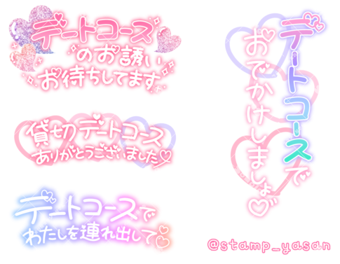 「デートコースのお誘いお待ちしてます」「デートコースでわたしを連れ出して」等デートコースのスタンプ(縦書き有)