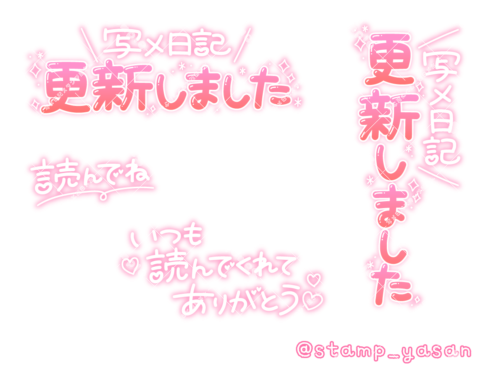 「写メ日記更新しました」「読んでね」「いつも読んでくれてありがとう」のスタンプ(縦書き有)