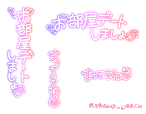 「お部屋デートしましょ」「まってるね」のスタンプ(縦書き有)