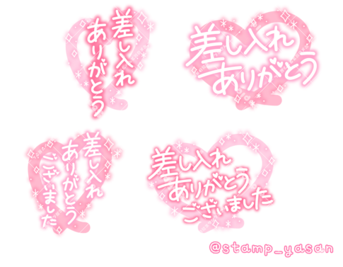 「差し入れありがとう」「差し入れありがとうございました」のスタンプ(縦書き有)
