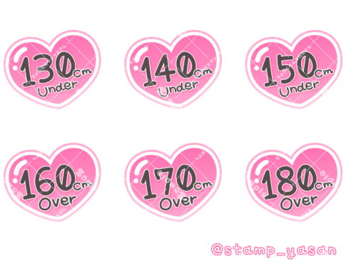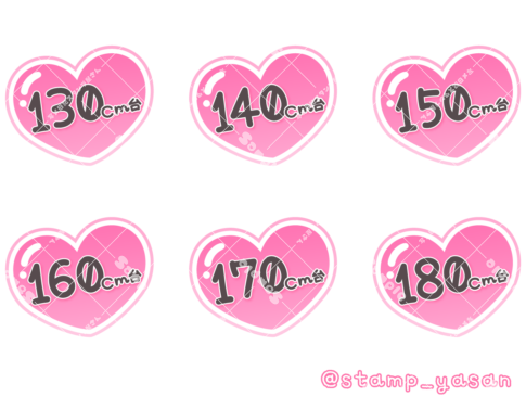 身長アイコンスタンプ(130/140/150/160/170/180cmUnder&Over)