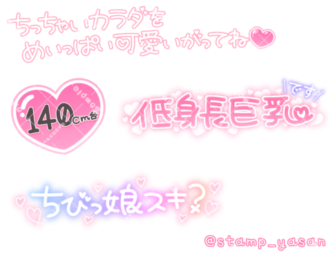 「貧乳ぽちゃ」「ちっぱいしか勝たん」「おててにおさまる幸せを2つ持ってます」「わたしは貧乳じゃないの!!品のある乳で品乳なの」のスタンプ(縦書き有)
