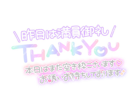 「昨日は満員御礼THANK YOU♡本日はまだ空き枠ございます♡お誘いお待ちしております」のスタンプ