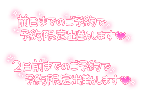 「前日(2日前)までのご予約で予約限定出勤します」のスタンプ