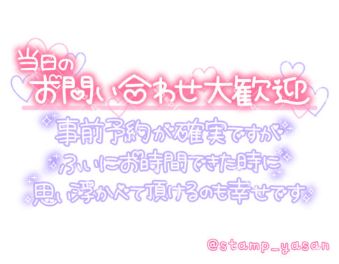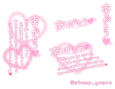 「ありがとう ご予約入れて頂いたアナタ、急遽逢いに来てくださったアナタ、今わたしのコト考えてくださってたアナタ、沢山のありがとうが伝わりますように」のスタンプ(縦書き有)