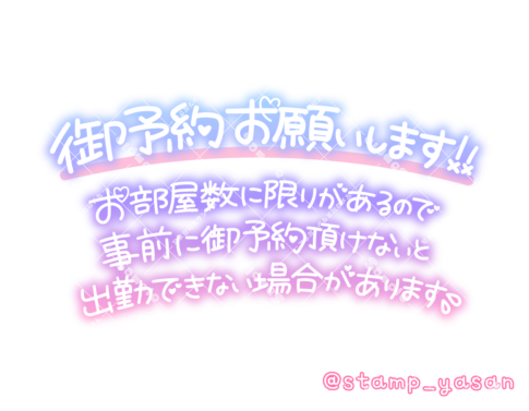 「御予約お願いします!!お部屋数に限りがあるので事前に御予約頂けないと出勤できない場合があります」のスタンプ