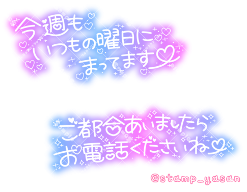 「今週もいつもの曜日にまってます」「ご都合あいましたらお電話くださいね」のスタンプ