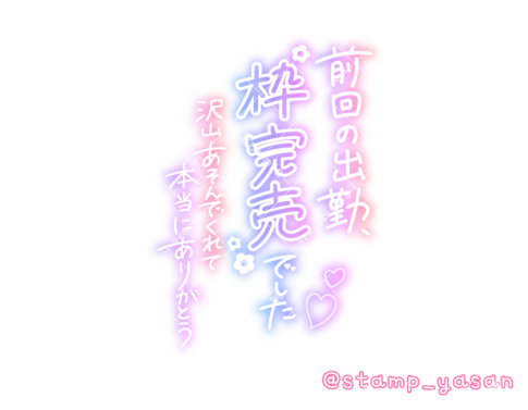 「前回の出勤、枠完売でした♡沢山あそんでくれて本当にありがとう」の縦書きスタンプ
