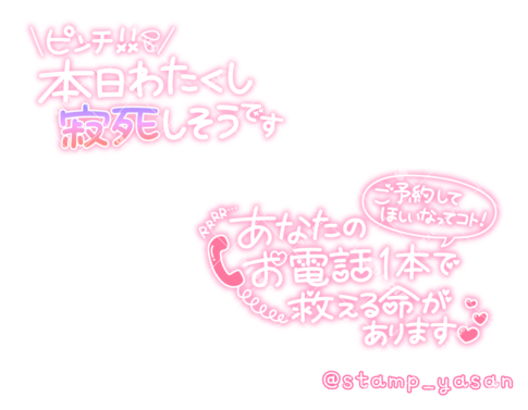 「ピンチ!!本日わたくし寂死しそうです」「あなたのお電話1本で救える命があります」のスタンプ