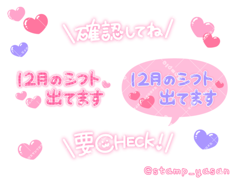 「12月のシフト出てます」「確認してね」「要CHECK!」のスタンプ