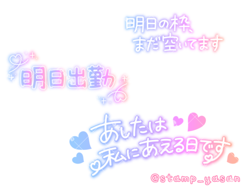 「明日出勤」「明日の枠、まだ空いてます」「あしたは私にあえる日です」のスタンプ