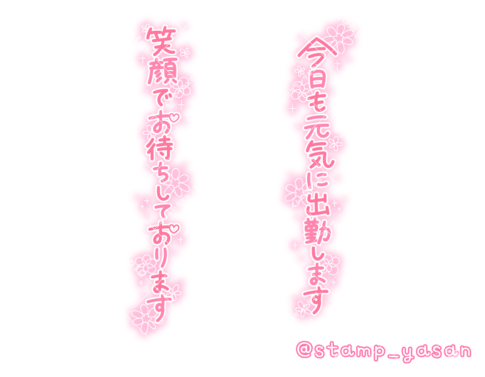 「今日も元気に出勤します」「笑顔でお待ちしております」の縦書きスタンプ