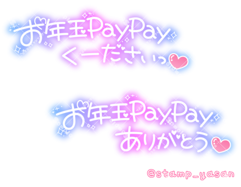 「お年玉PayPayくーださいっ」「お年玉PayPayありがとう」のスタンプ