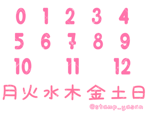 「0〜9」までの数字&「月〜日」までの曜日の空欄スタンプ(日付)