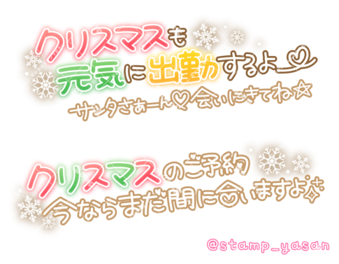 「クリスマスも元気に出勤するよー サンタさぁーん会いにきてね」「クリスマスのご予約今ならまだ間に合いますよ」のスタンプ