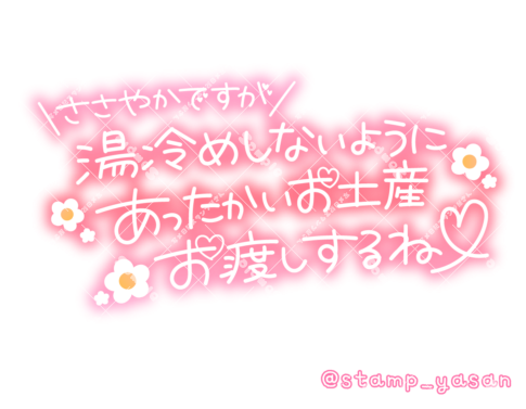 「ささやかですが湯冷めしないようにあったかいお土産お渡しするね」のスタンプ