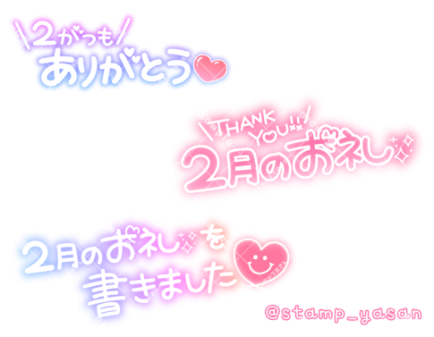 「2がつもありがとう」「2月のお礼」「2月のお礼を書きました」のスタンプ