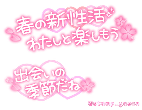 「春の新生活わたしと楽しもう」「出会いの季節だね」のスタンプ