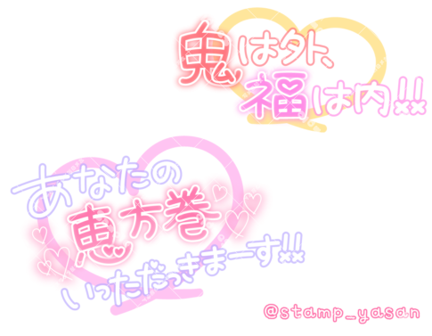 「鬼は外、福は内!!」「あなたの恵方巻いっただっきまーす!!」の節分スタンプ