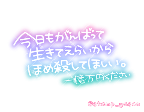 「今日もがんばって生きてえらいからほめ殺してほしい。一億万円ください」のスタンプ