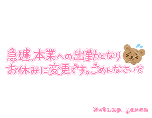 「◯月◯日◯曜日から期間限定で出勤します」「◯月◯日◯曜日から◯月◯日◯曜日まで期間限定で出勤します」のスタンプ(出稼ぎ用)