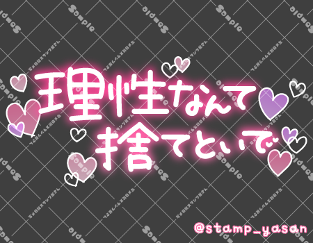 「理性は置いてきてね♡」「あなたのこと、快楽の底に連れてってあげる」のスタンプ(縦書き)