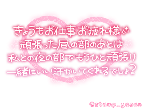 「きょうもお仕事お疲れ様 頑張った昼の部のあとは私との夜の部でもうひと頑張り一緒にいい汗かいてくれるでしょ?」のスタンプ