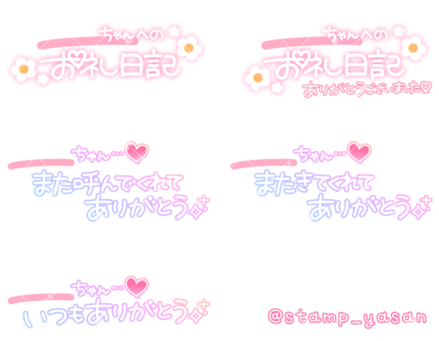 「◯◯ちゃんへのお礼日記」「◯◯ちゃん…♡また呼んでくれて(きてくれて/いつも)ありがとう」のスタンプ(空欄書き込み用)