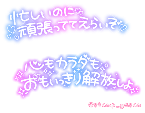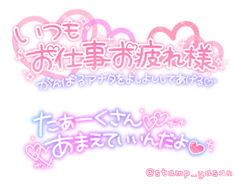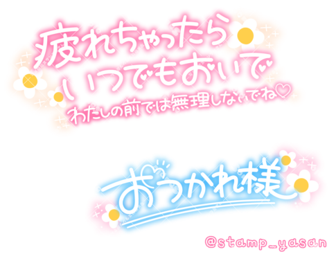 「いつもお仕事お疲れ様 がんばるアナタをよしよししてあげる」「たぁーくさんあまえていいんだよ」のスタンプ