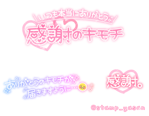 「いつも本当にありがとう 感謝のキモチ」「ありがとうのキモチが届きますように…」「感謝。」のスタンプ