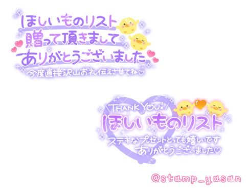 「ほしいものリスト贈って頂きましてありがとうございました」「ほしいものリストありがとうございました」のスタンプ