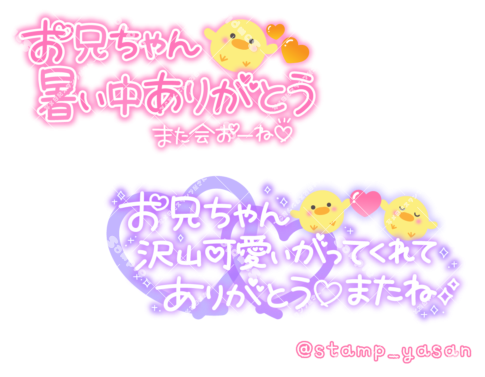 「お兄ちゃん暑い中ありがとう」「お兄ちゃん沢山可愛がってくれてありがとう♡またね」のスタンプ