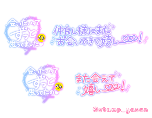 「会いたいってずっと思ってました」「仲良し様にまたお会いできて嬉し〜!」「会いたいってずっと思ってたの」「また会えて嬉し〜!」のスタンプ
