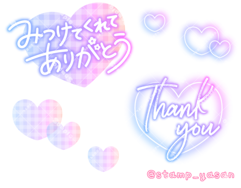 「みつけてくれてありがとう」「Thank you」のスタンプ